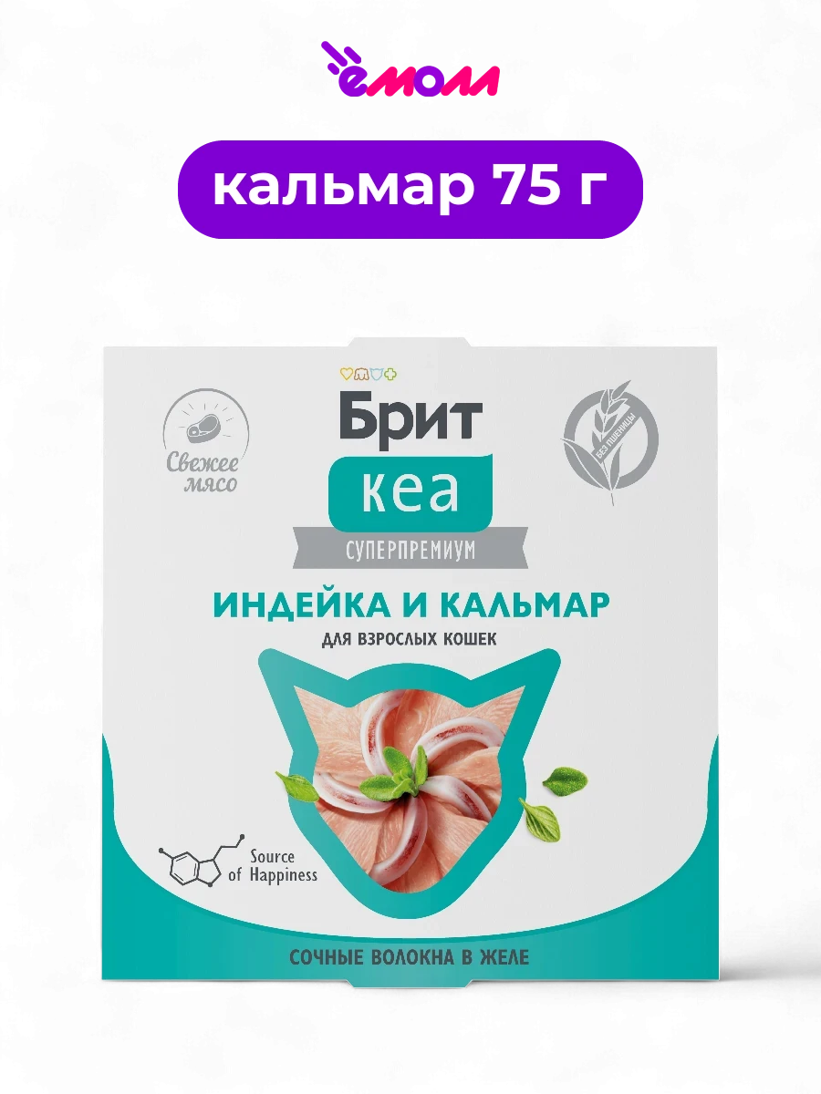Брит Кеа корм для взрослых кошек индейка и кальмар в желе 75 г