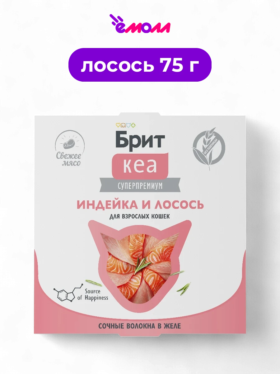 Брит Кеа влажный корм для взрослых кошек индейка и лосось в желе 75 г
