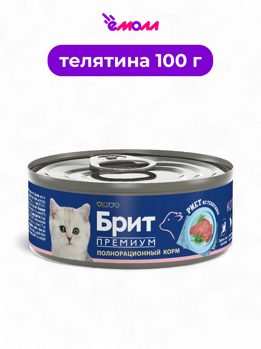 Брит Премиум консервированный полнорационный корм для котят Риет из телятины 100 г