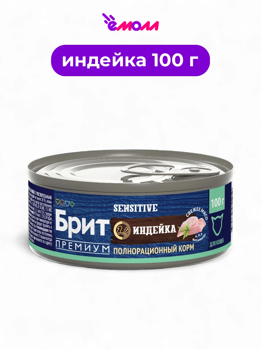 Брит Премиум консервы с индейкой для кошек с чувствительным пищеварением By Nature 100 г