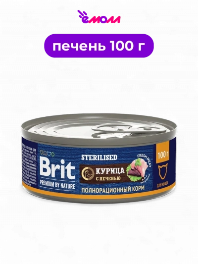 Брит Премиум консервы с мясом курицы и печенью для стерилизованных кошек By Nature 100 г