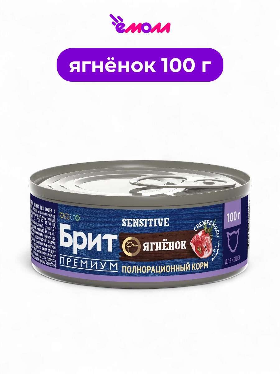 Брит Премиум консервы с ягнёнком для кошек с чувствительным пищеварением By Nature 100 г