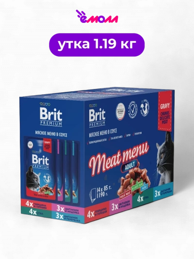 Брит Премиум набор паучей для кошек Мясное меню 14 шт х 85 г