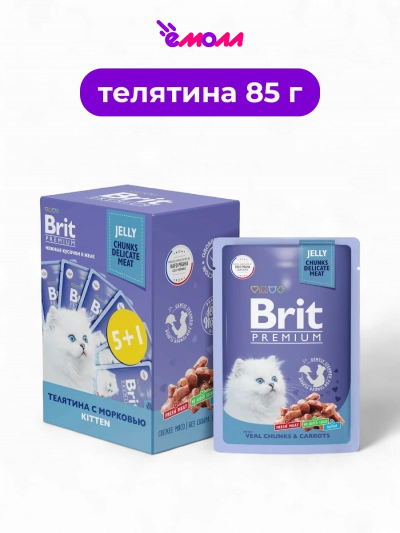 Брит Премиум набор паучей для котят телятина и морковь в желе 5+1 85 г