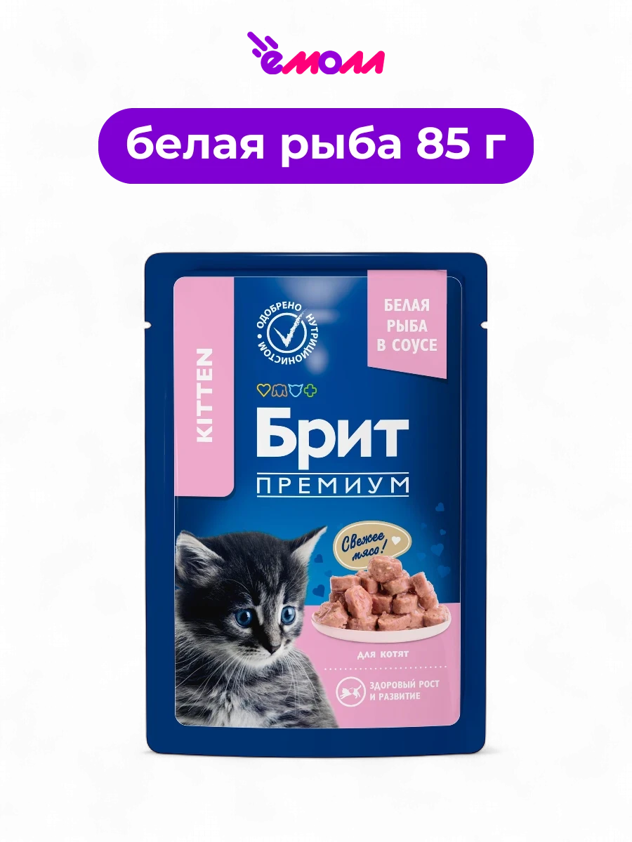 Брит Премиум пауч для котят белая рыба в соусе 85 г