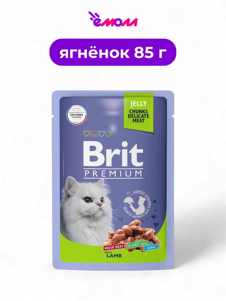 Брит Премиум пауч для взрослых кошек ягнёнок в желе 85 г
