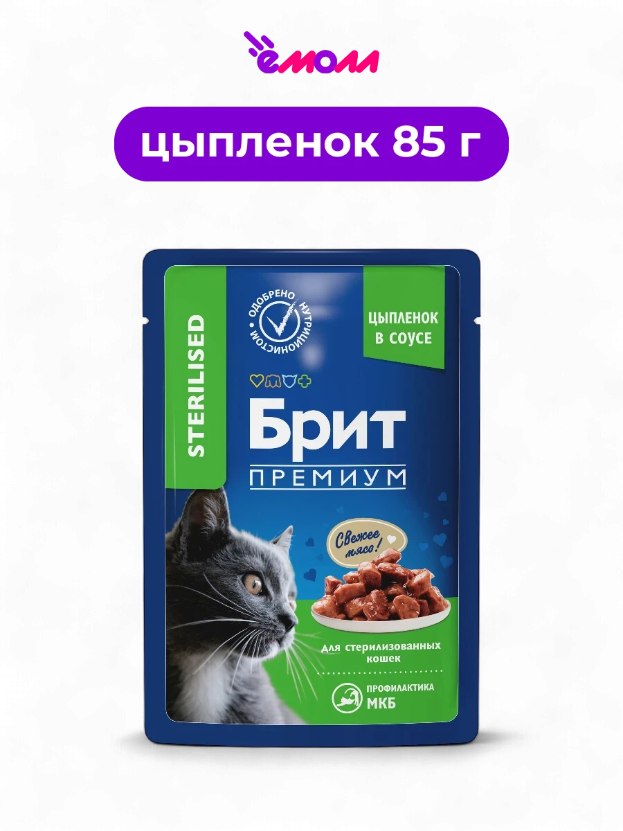 Паучи Brit Premium однозначно заинтересуют вашу кошку и станут для неё любимым блюдом. Влажный корм содержит все необходимые витамины и минералы, которые необходимы стерилизованному питомцу. Таурин в составе — важный ингредиент для поддержания остроты зрения и здоровья сердечно-сосудистой системы кошек.