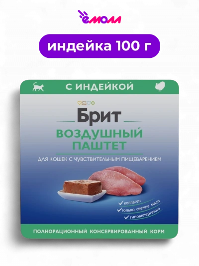 Брит Премиум воздушный паштет для кошек с чувствительным пищеварением индейка 100 г
