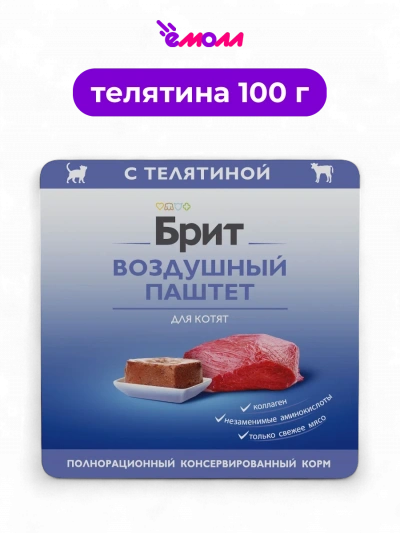 Брит Премиум воздушный паштет для котят телятина 100 г