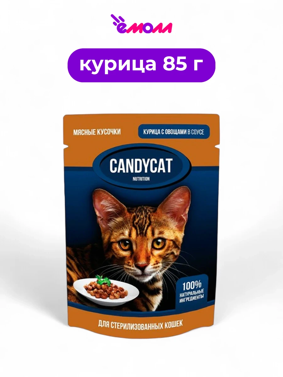 Candycat влажный корм для стерилизованных кошек с курицей и овощами в соусе 85 г