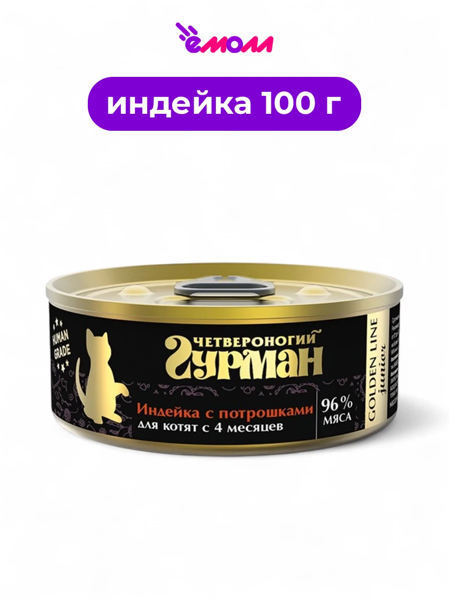 Влажный корм для котят «Четвероногий Гурман» серии Golden Line с индейкой и потрошками в желе — это высококачественное питание, разработанное специально для растущих питомцев.