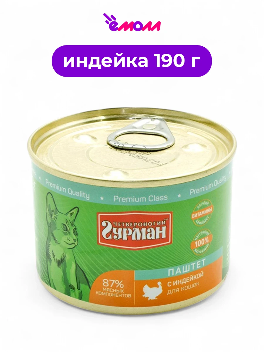 Четвероногий гурман паштет для кошек индейка 190 г