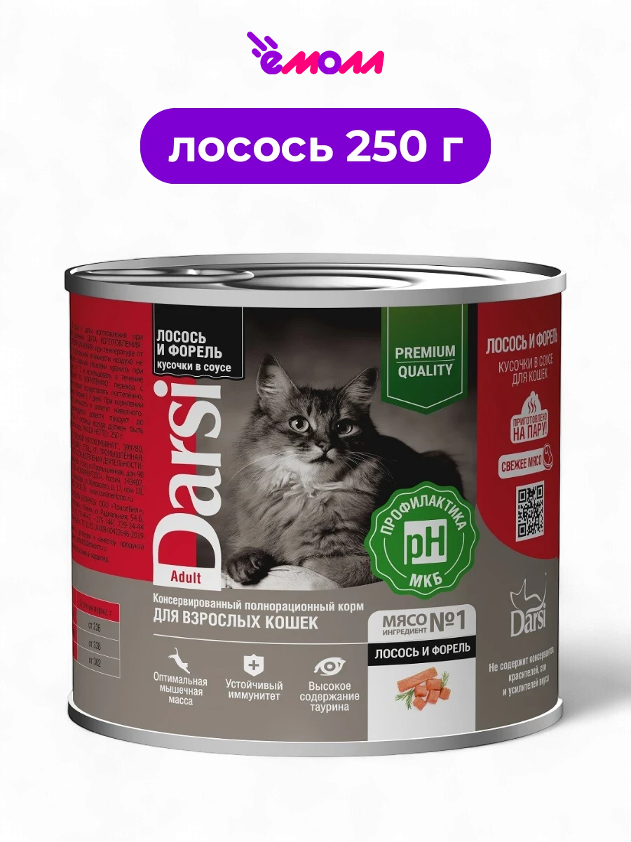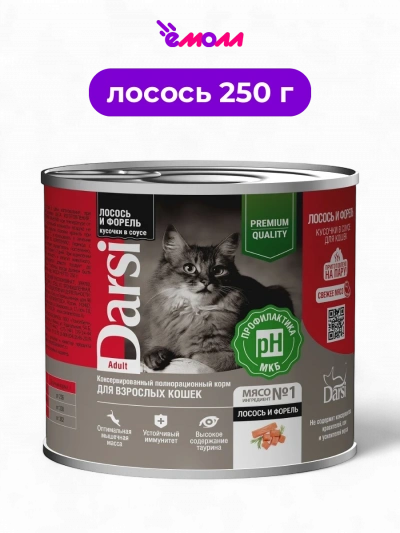 Darsi консервы для взрослых кошек Кусочки с лососем и форелью в соусе 250 г