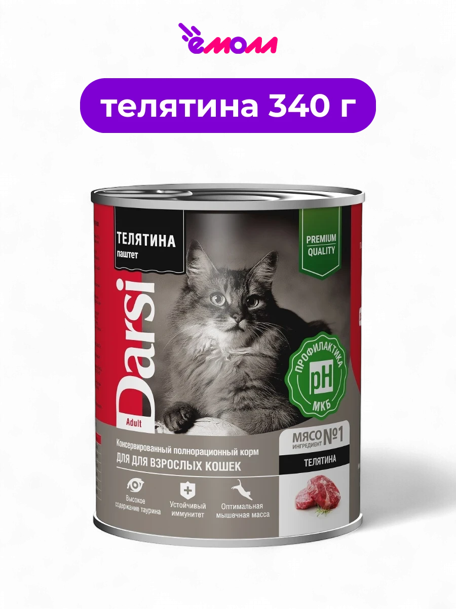 Darsi консервы для взрослых кошек Паштет Телятина 340 г