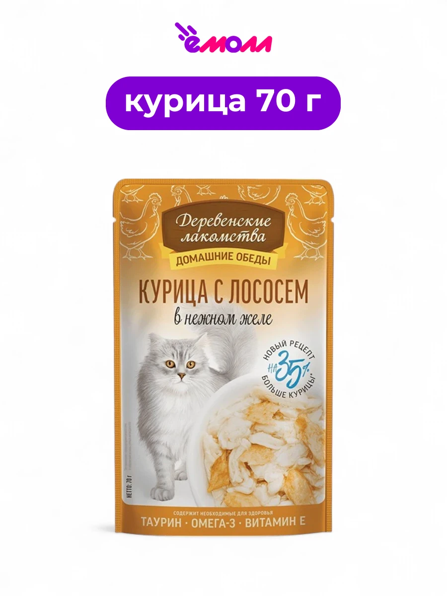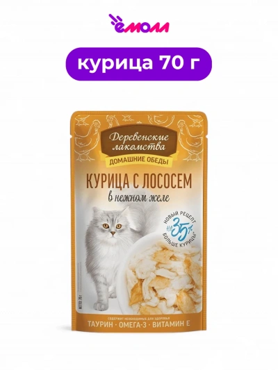 Деревенские лакомства корм для кошек Курица с лососем в нежном желе 70 г