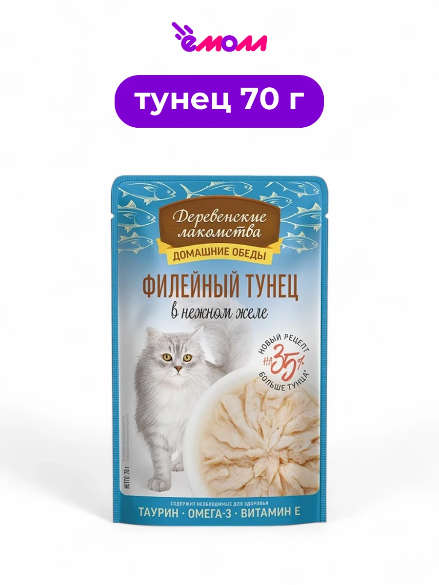 Деревенские лакомства влажный корм для кошек Филейный тунец в нежном желе 70 г