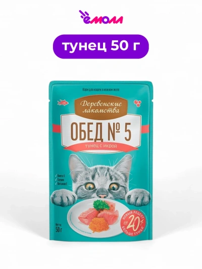 Деревенские лакомства влажный корм для кошек тунец с икрой Обед №5 50 г