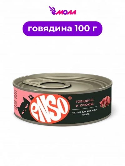 Enso корм консервированный для кошек паштет с говядиной и клюквой 100 г