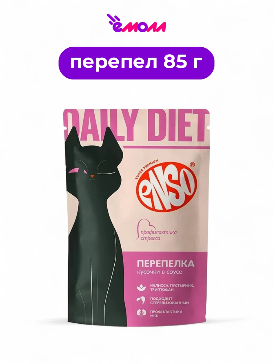 Enso корм влажный полнорационный для кошек для профилактики стресса кусочки в соусе с перепелкой Daily Diet пауч 85 г