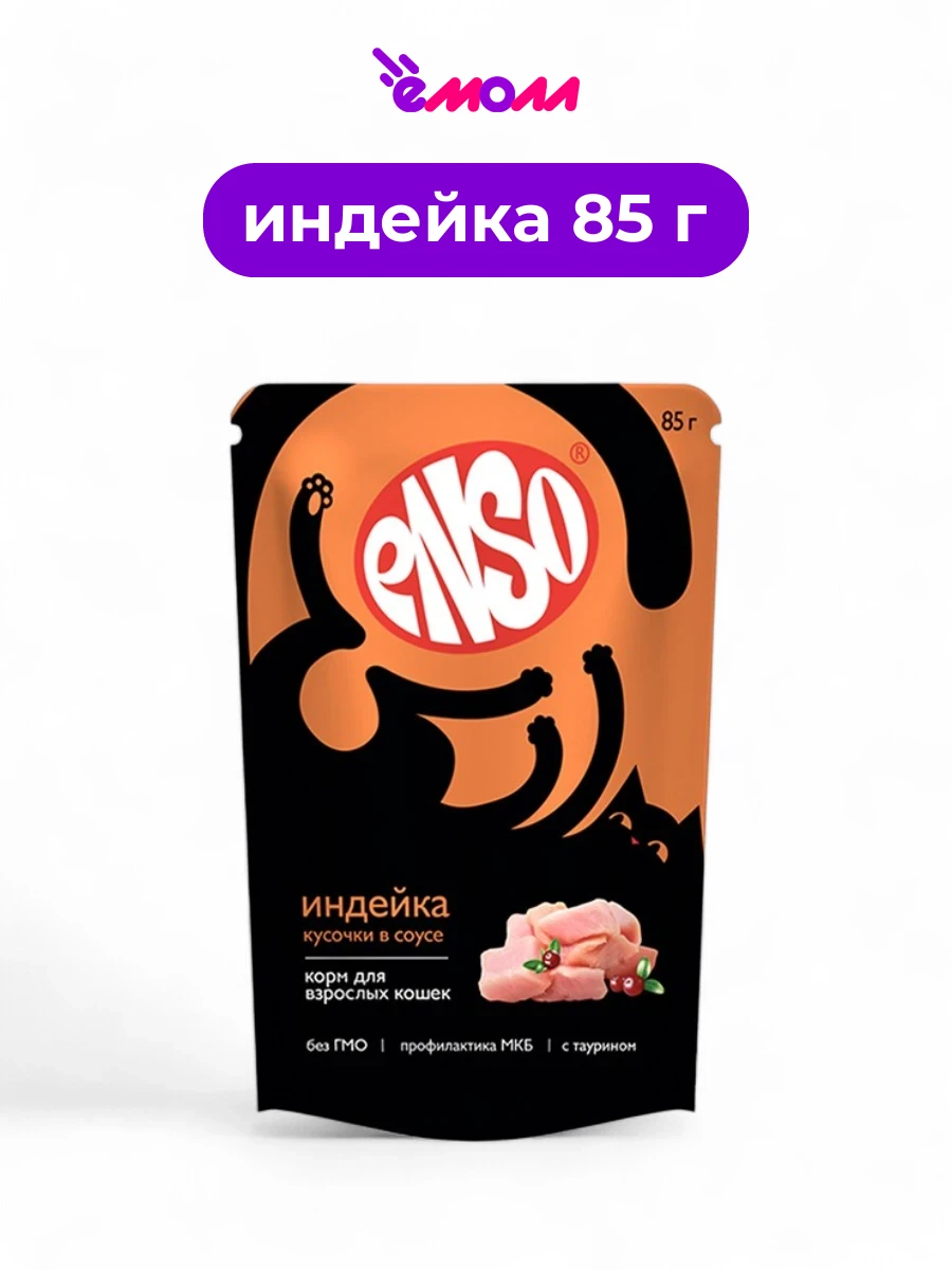 Enso корм влажный полнорационный для кошек кусочки в соусе с индейкой пауч 85 г