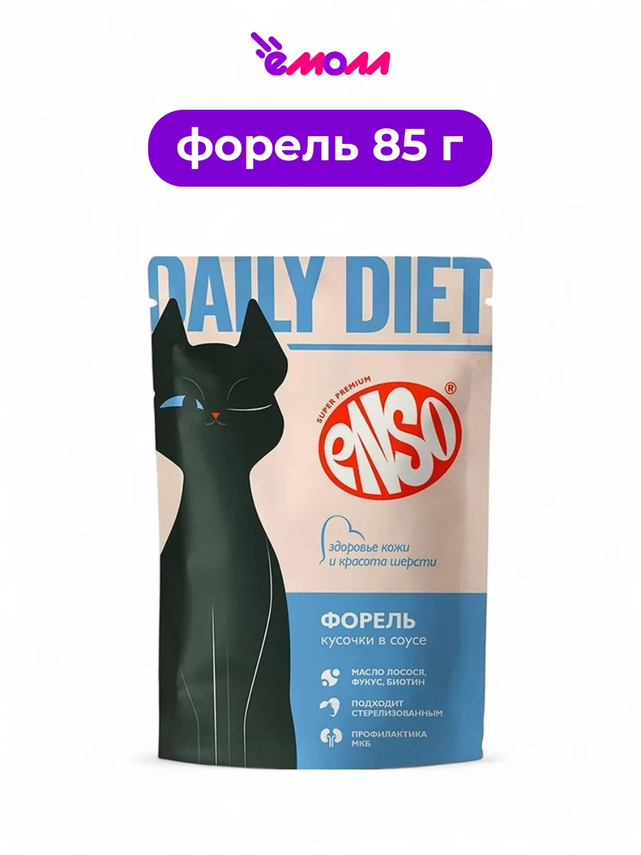 ENSO влажный корм для кошек для кожи и шерсти кусочки в соусе с форелью Daily Diet пауч 85 г
