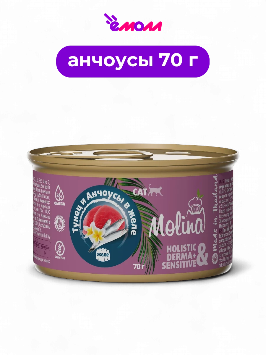 Molina консервы для котят и кошек тунец и анчоусы в желе 70 г