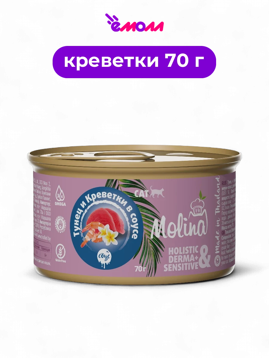 Molina консервы для котят и кошек тунец и креветки в соусе 70 г
