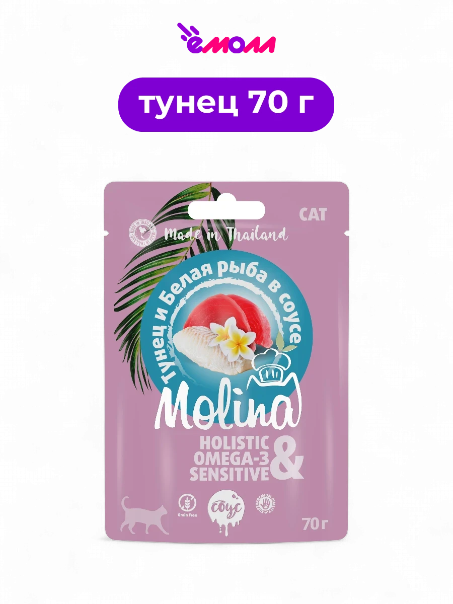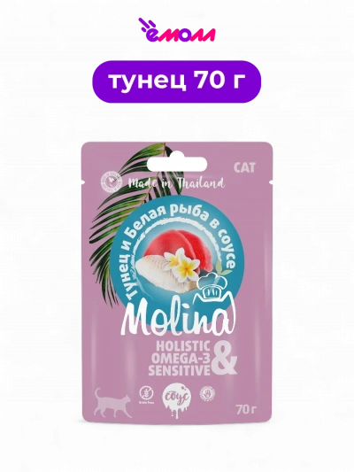 Molina пауч для котят и кошек тунец и белая рыба в соусе 70 г