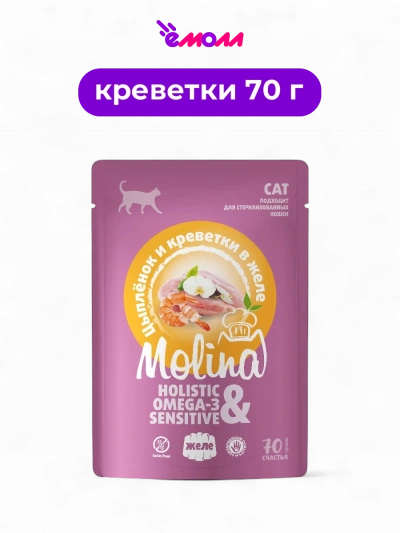 Molina пауч для взрослых кошек цыпленок и креветки в желе 70 г