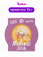 Molina влажный корм для взрослых кошек цыпленок и креветки в желе 75 г