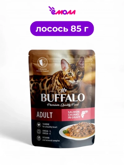 Mr.Buffalo ADULT HAIR & SKIN — это полнорационный влажный корм, специально разработанный для взрослых кошек с чувствительной кожей. Его уникальная формула включает натуральные, гипоаллергенные и легко усваиваемые ингредиенты, обеспечивающие оптимальное содержание животных белков, жиров, витаминов и микроэлементов, необходимых для поддержания здоровья вашего питомца.