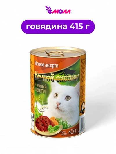 Ночной охотник консервированный корм для кошек паштет Мясное ассорти 415 г