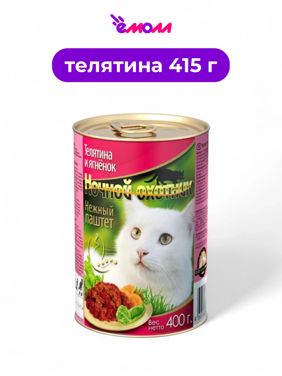 Ночной охотник консервированный корм для кошек паштет Телятина и ягненок 415 г