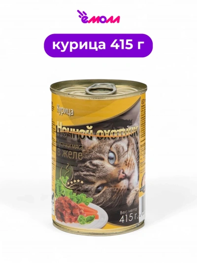 Ночной охотник консервированный корм для кошек в желе Курица 415 г