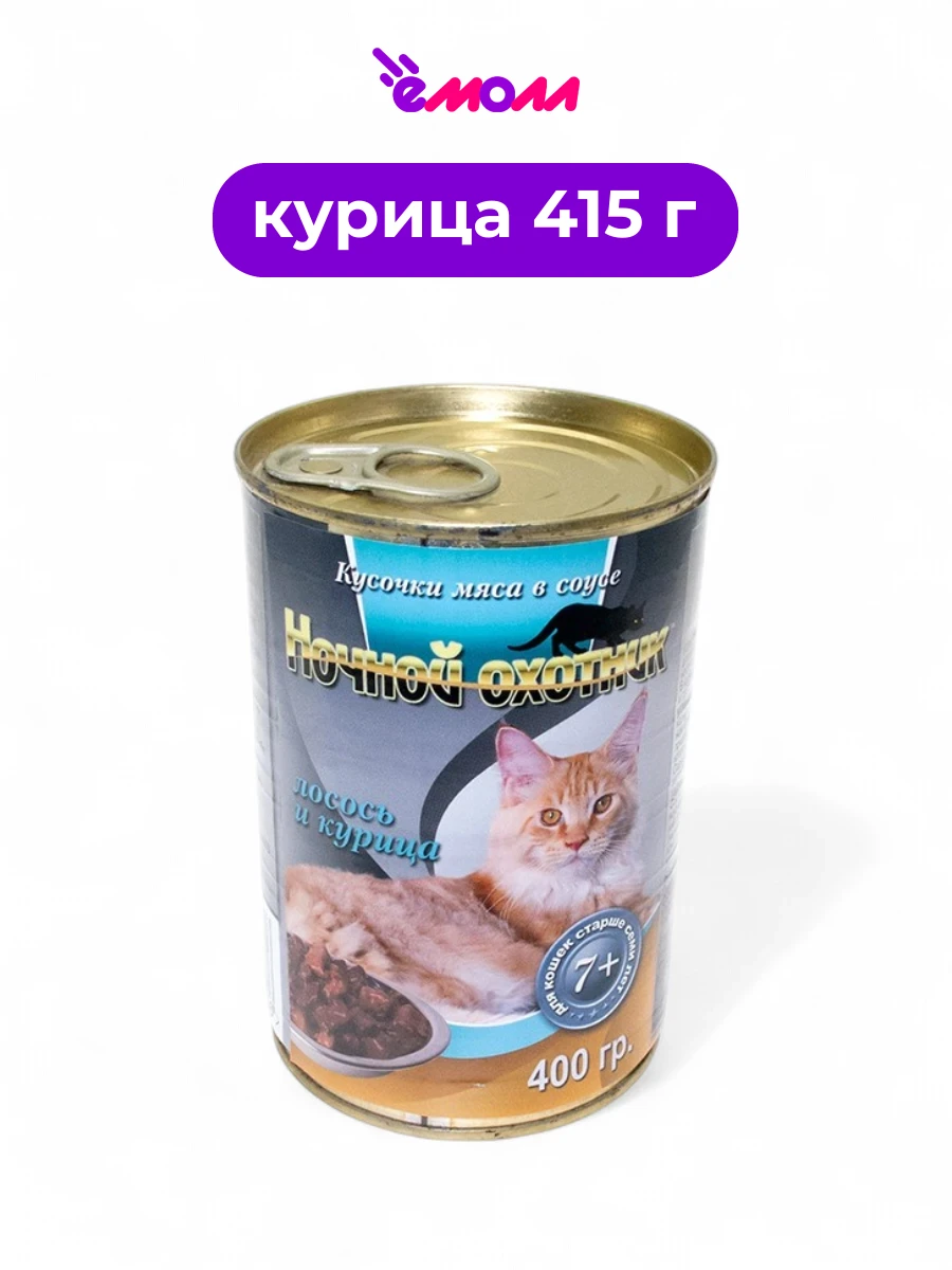Ночной охотник консервированный корм для стареющих кошек в соусе Лосось и Курица 415 г