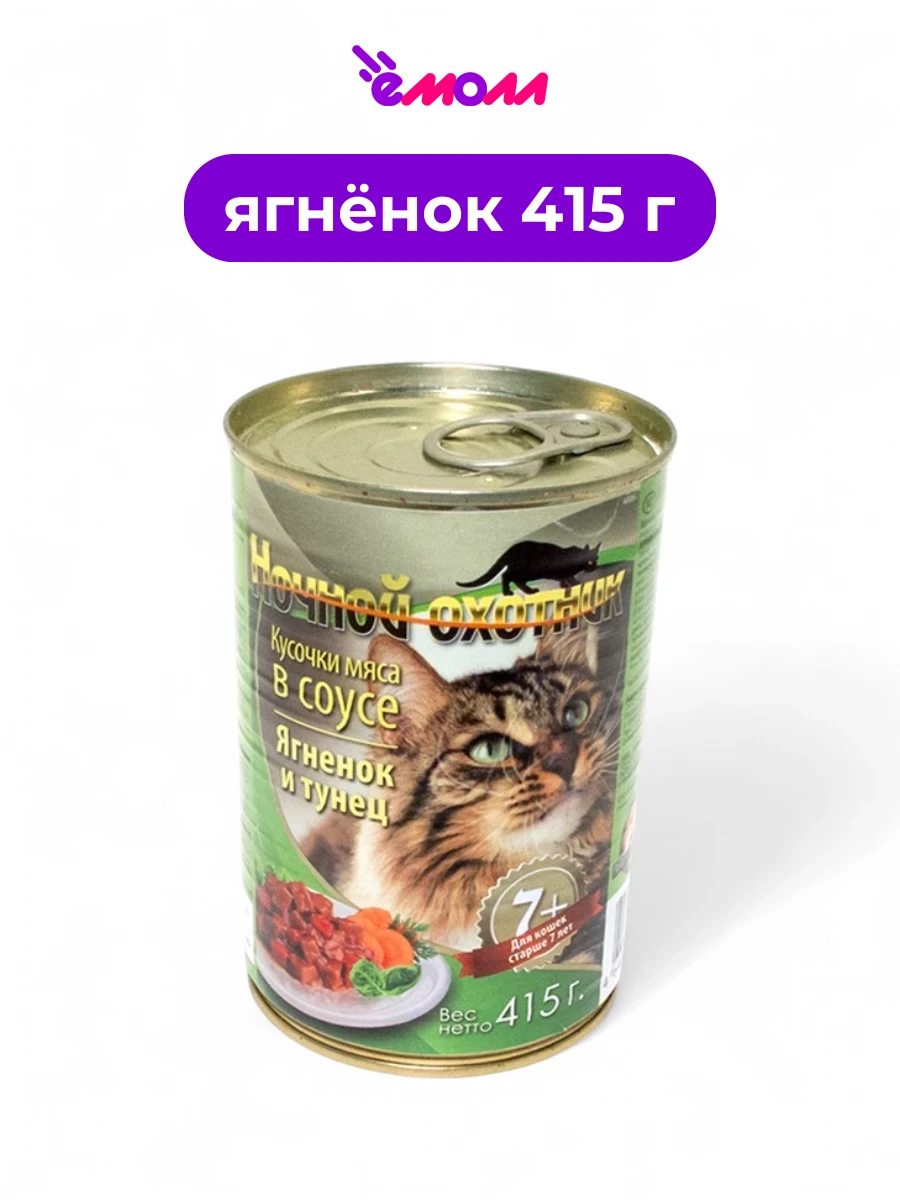 Ночной охотник консервированный корм для старых кошек в соусе Ягненок тунец 415 г