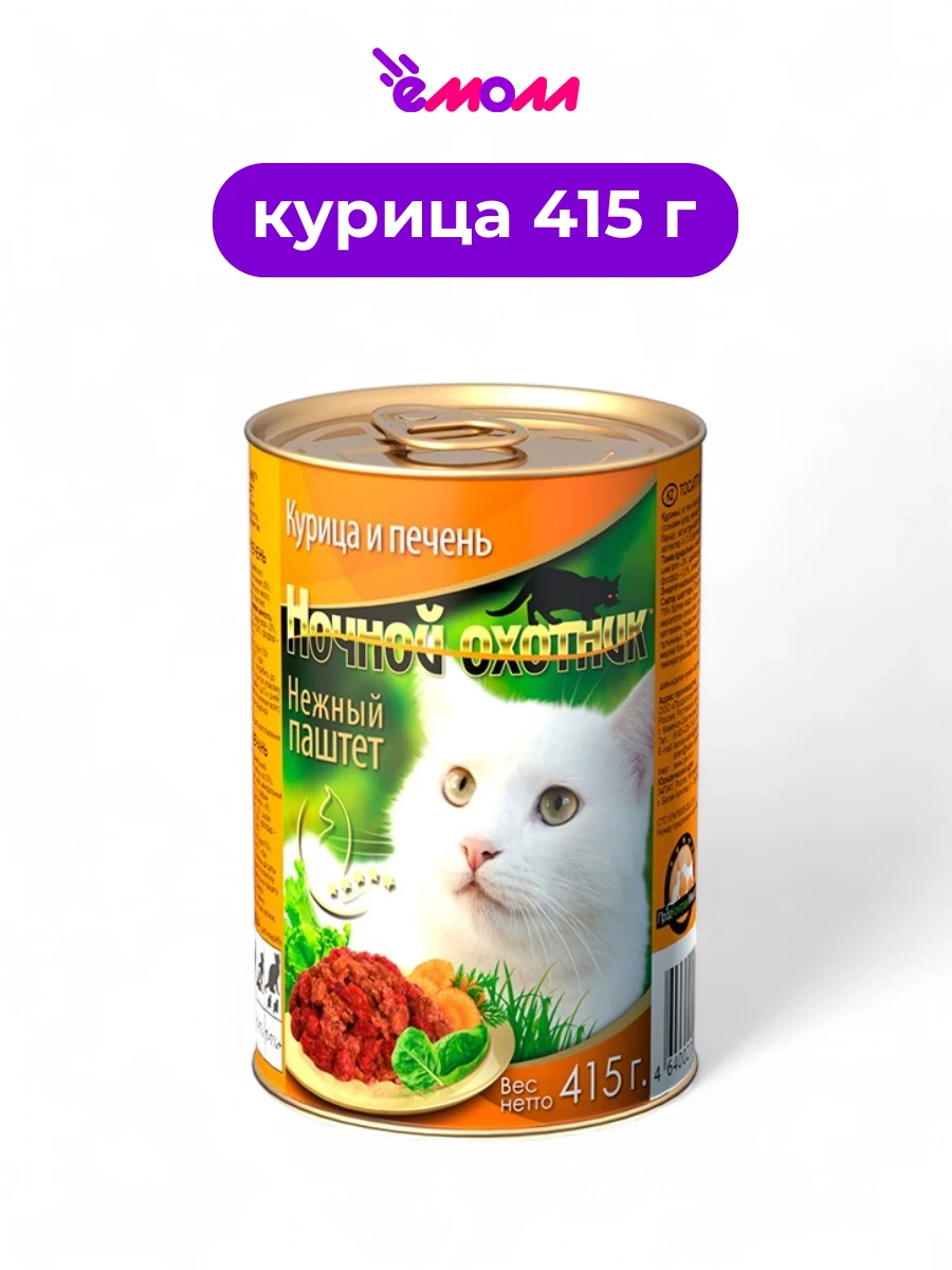 Ночной охотник консервированный корм для животных паштет Курица и печень 415 г
