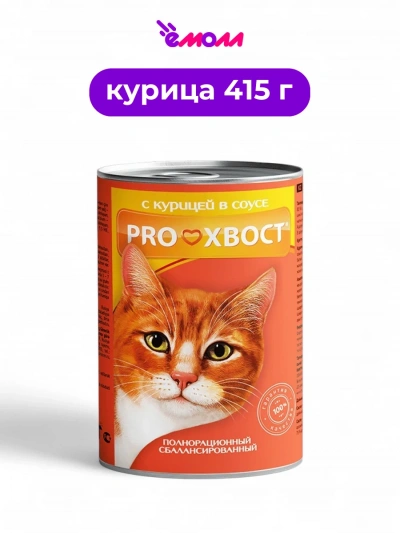 Консервированный корм для кошек PROХВОСТ с курицей в соусе — это сбалансированное питание, разработанное для удовлетворения ежедневных потребностей взрослых кошек всех пород.