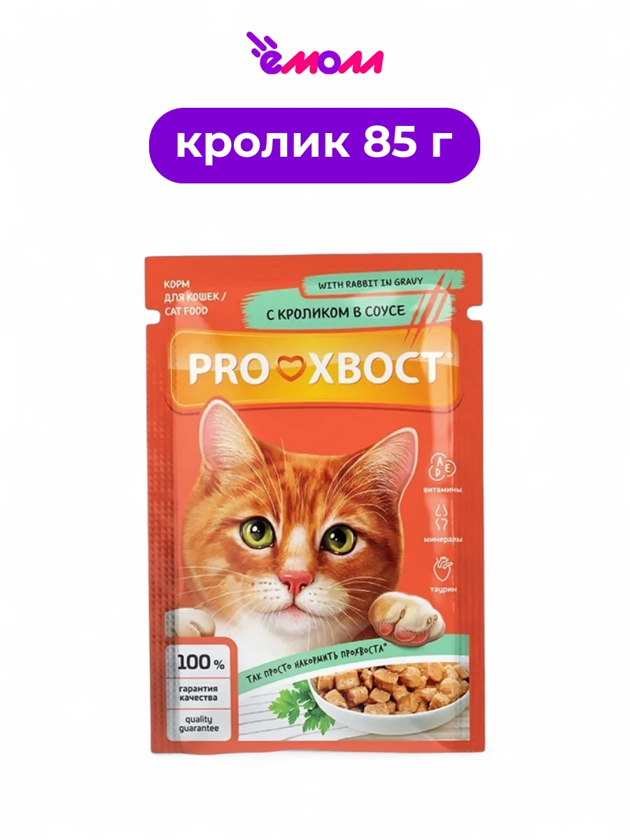Влажный корм для кошек PROХВОСТ с кроликом в соусе — это полнорационное сбалансированное питание, разработанное с учетом всех потребностей взрослых кошек.