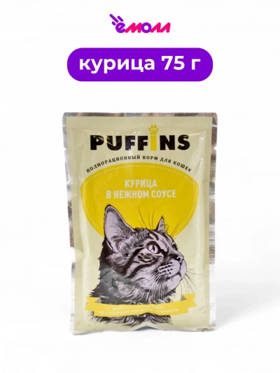 Puffins влажный корм для кошек в соусе с курицей 75 г