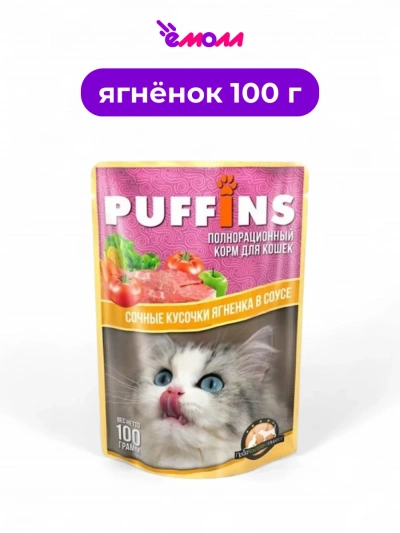 Puffins влажный корм для кошек в соусе Ягненок 100 г