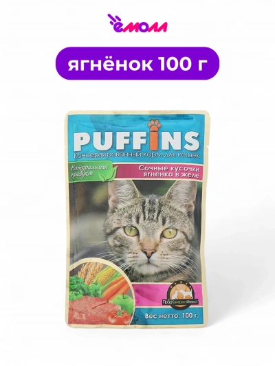 Puffins влажный корм для кошек в желе Ягненок 100 г