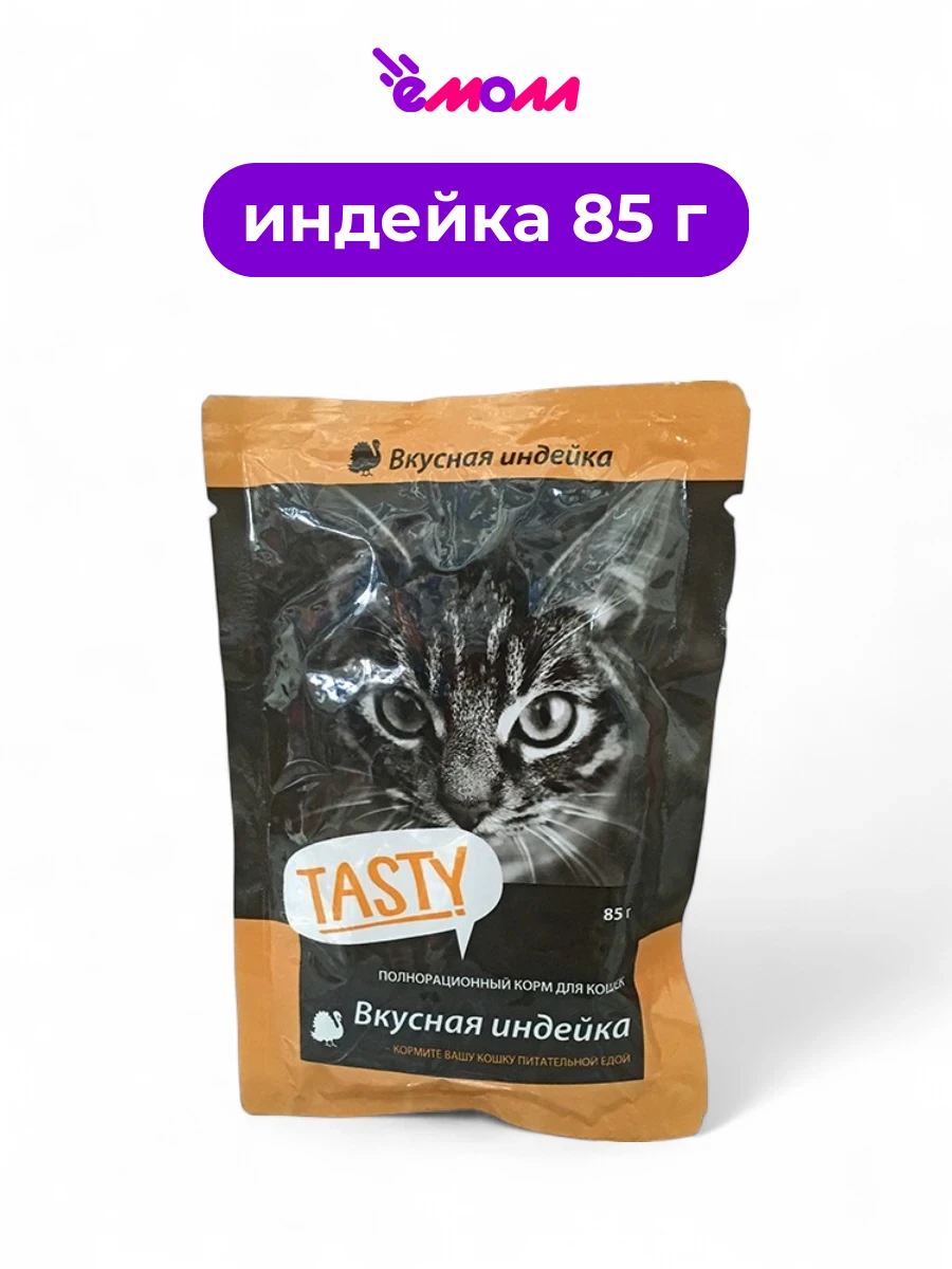 Влажный корм для кошек Tasty с индейкой в желе — это сбалансированное питание, разработанное для удовлетворения потребностей взрослых кошек всех пород.