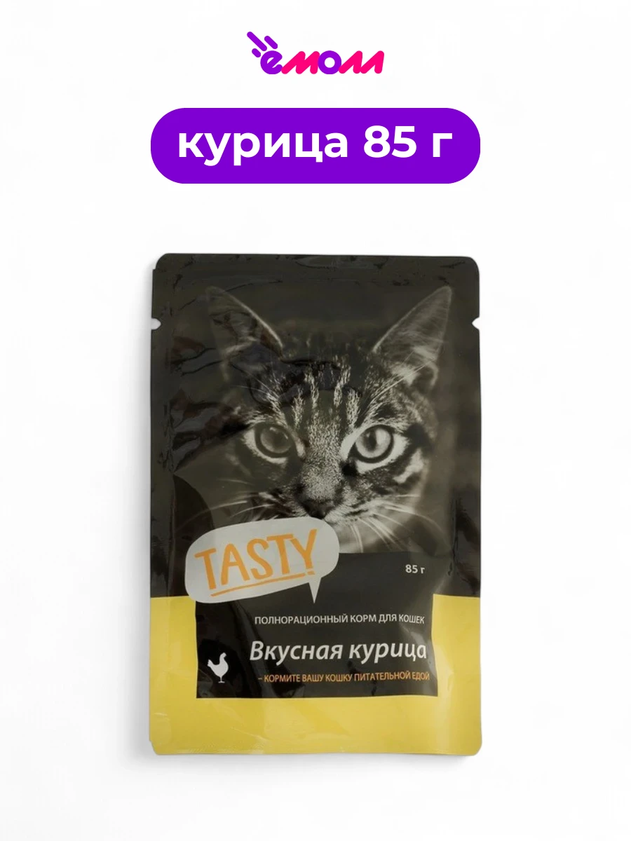 Влажный корм для кошек Tasty с курицей в желе — это сбалансированное питание, разработанное для удовлетворения потребностей взрослых кошек.