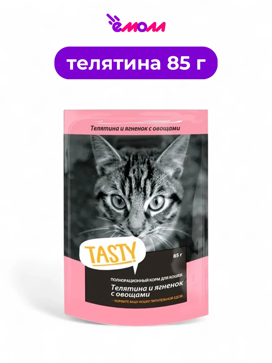 Tasty влажный корм для кошек с телятиной ягненком и овощами в желе 85 г