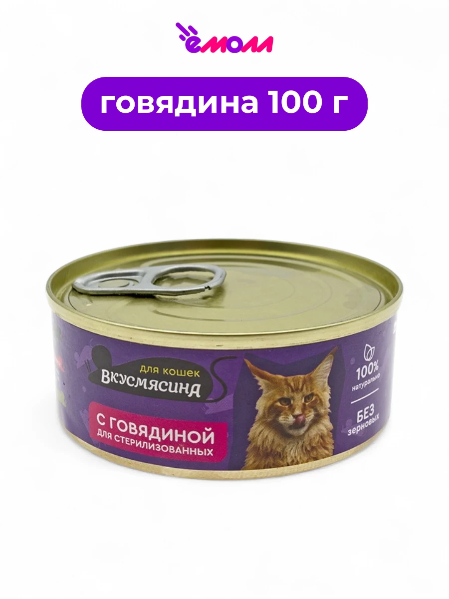 ВКУСМЯСИНА для стерилизованных кошек с говядиной — это полнорационный влажный корм, специально разработанный для удовлетворения потребностей стерилизованных кошек и кастрированных котов.