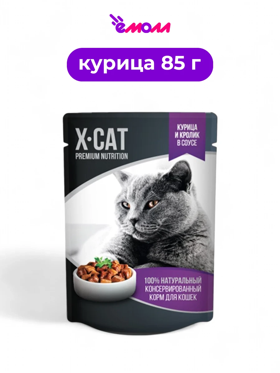 X-CAT влажный корм для кошек с курицей и кроликом в соусе — это изысканное сочетание вкусов, которое непременно понравится вашему питомцу.