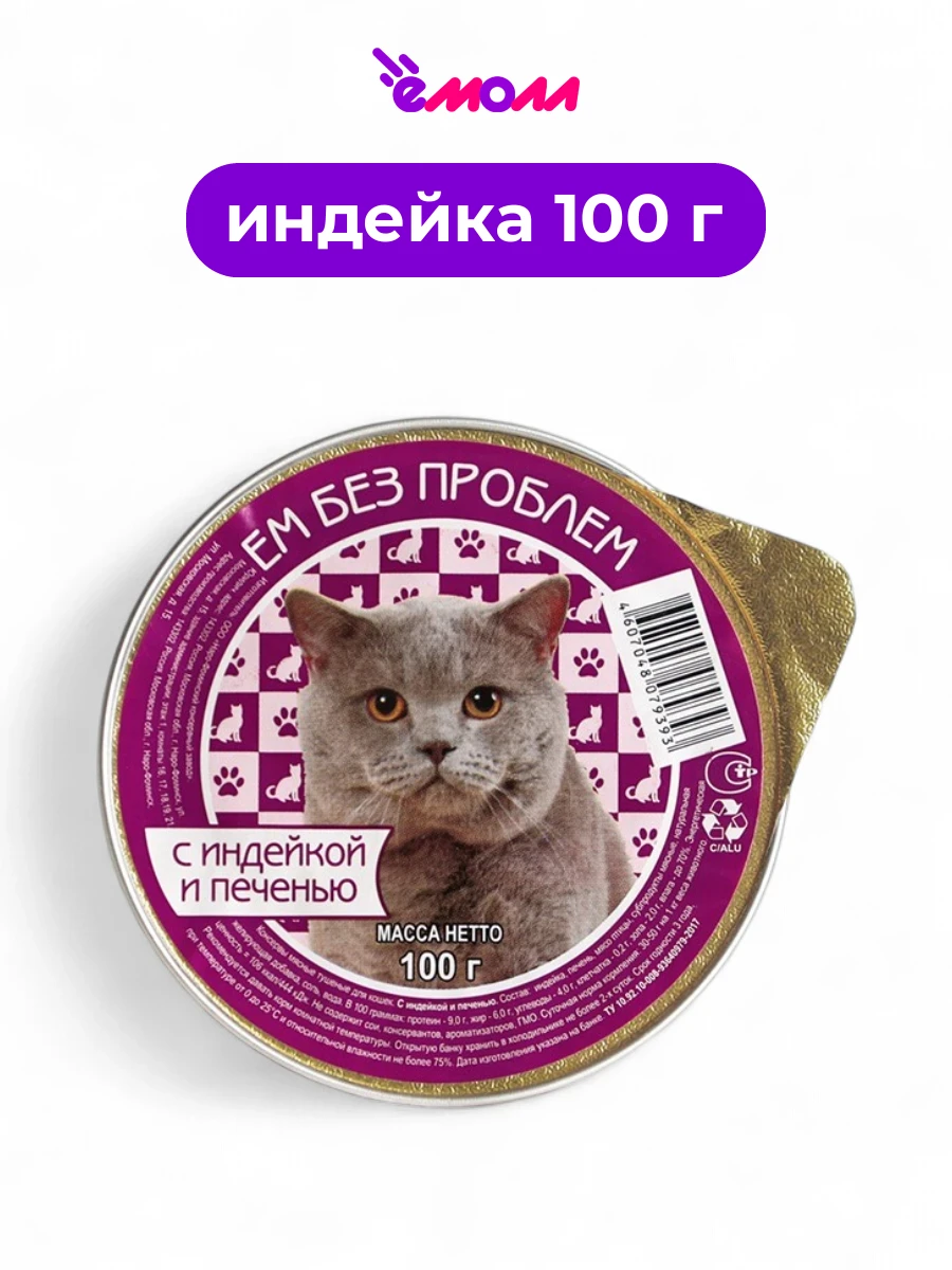 Зоогурман консервированный корм для кошек Ем Без Проблем индейка печень 100 г