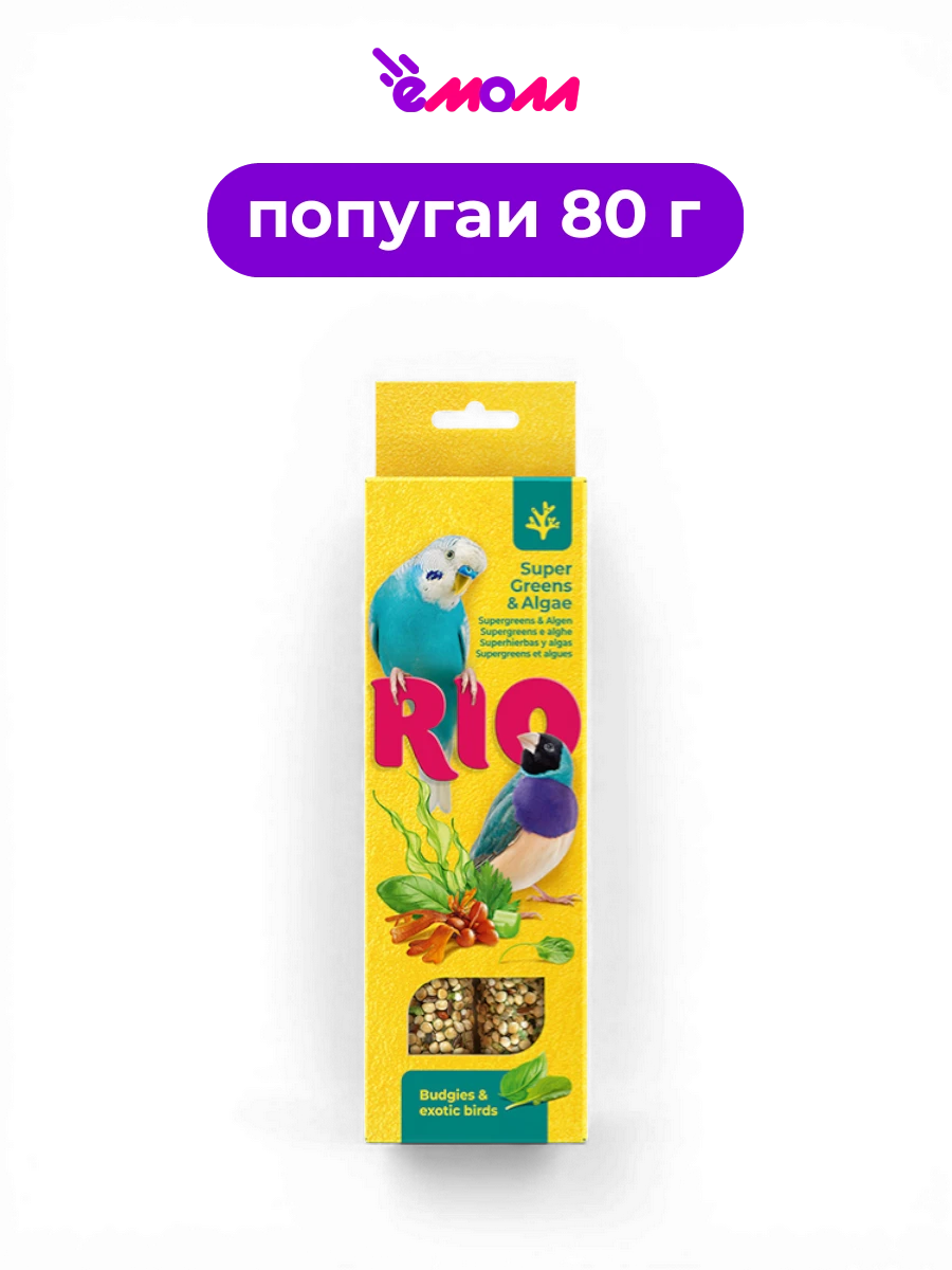 Рио палочки для волнистых попугаев и экзотических птиц суперзелень и водоросли 2 шт 40 г