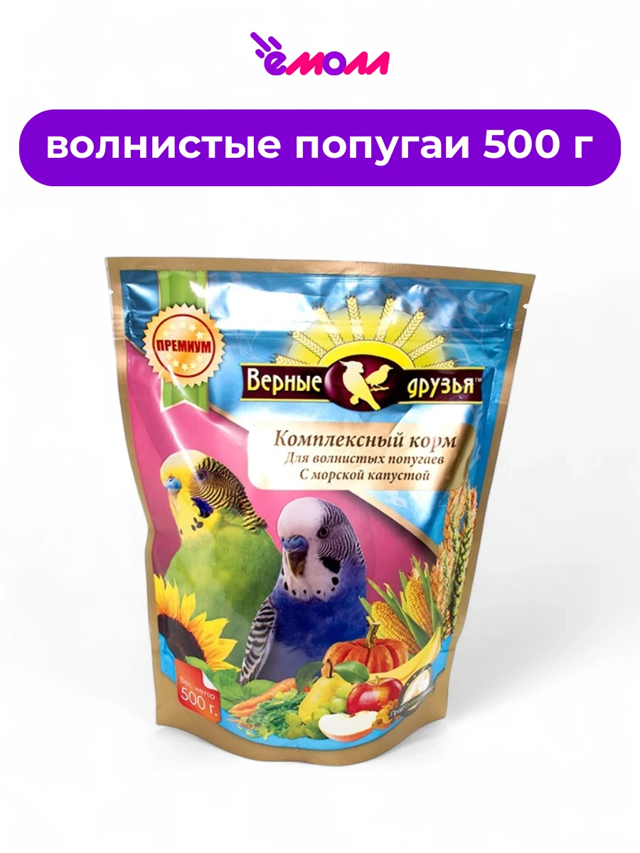 Верные друзья корм для волнистых попугаев с морской капустой 500 г